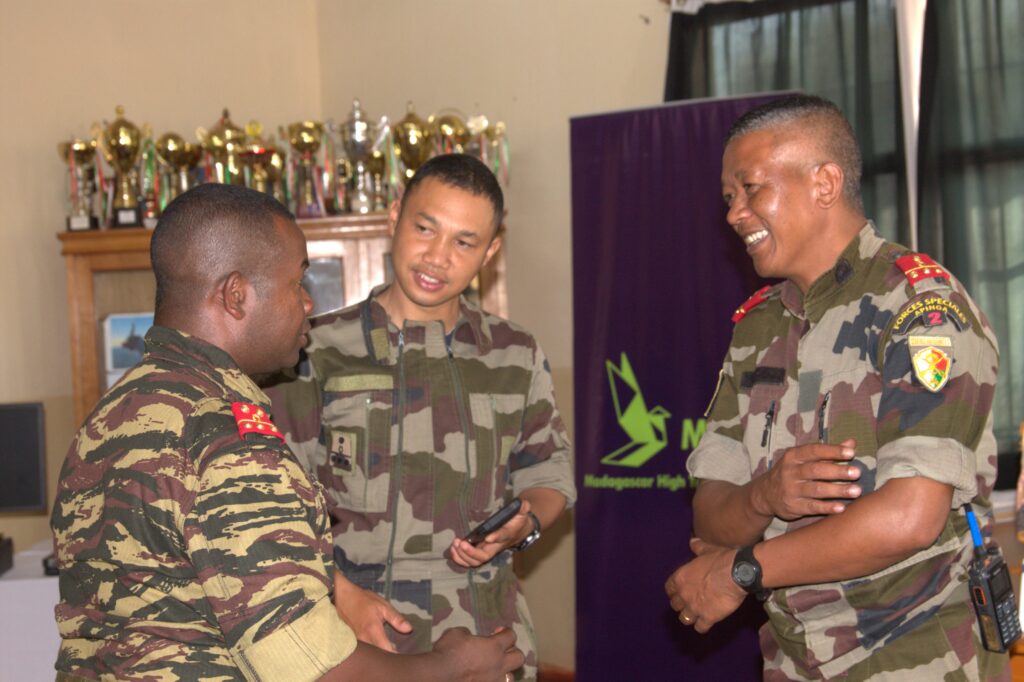 La cérémonie de remise s’est tenue en présence du Capitaine du 1er bataillon ainsi que du Colonel responsable des parachutistes malagasy, soulignant l’importance de cette initiative et son impact attendu.
